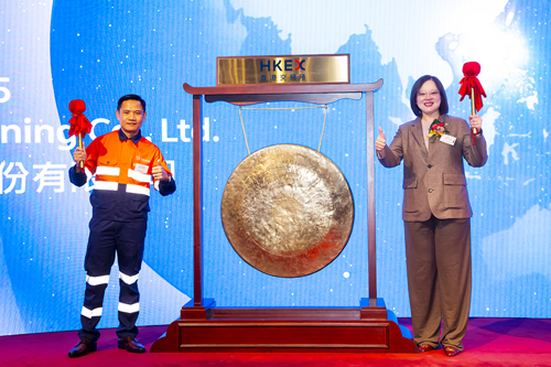 Ms. Lydia Yang, Executive Director & CEO of Chifeng Gold, and Mr. Phonesavanh Khamvongsa, Mining Manager of LXML, toll the bell to open the trading of Chifeng Gold on the Main Board of the HKEX.