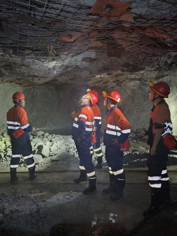 3月31日,许卫军一行深入生产一线,先后前往三分矿10中段(蚀变矿脉)以及二分矿5中段、6中段作业现场,实地查看矿脉赋存形态、采掘施工进度、现场管理规范等情况,详细了解生产组织安排、资源勘探进展现状,以及新建大孤顶子尾矿库项目、选厂改造项目推进情况,并针对一线生产运营及重点项目推进过程中的重点难点问题现场给予具体指导。