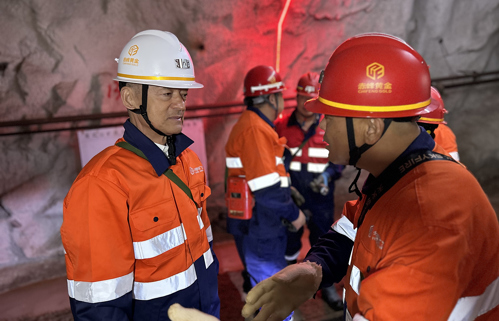 王建华董事长在华泰矿业总经理季红勇等管理团队陪同下,深入莲花山矿区井下技改工程现场,沿着井下巷道查看设备安装程度、工程建设进度。季红勇就项目阶段性成果、后续推进计划及需协同支持事项作详细汇报。