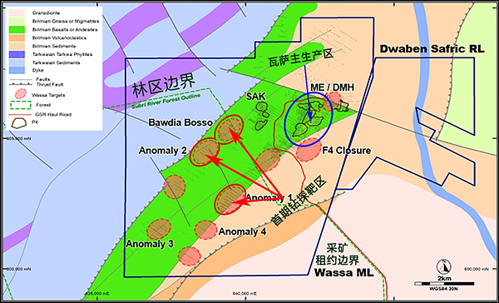 4月11日,加纳国家林业委员会批准金星资源瓦萨矿山在加纳苏布里林区东北部边缘、公司采矿租约范围内的林区进行勘探活动的准入许可。瓦萨矿山采矿租约的西南部与苏布里林区的边缘相交,并有部分面积重叠。公司勘探团队研究认为,该重叠区位于控制瓦萨主矿体的构造矿化带南延部位,其构造、岩性及蚀变特征与生产区的控矿特征类同。随后勘探团队在对此区域进行勘察的过程中,发现了见好的化探异常,在该区域的进一步勘探对瓦萨矿山的资源量和储量增加有重大意义。
