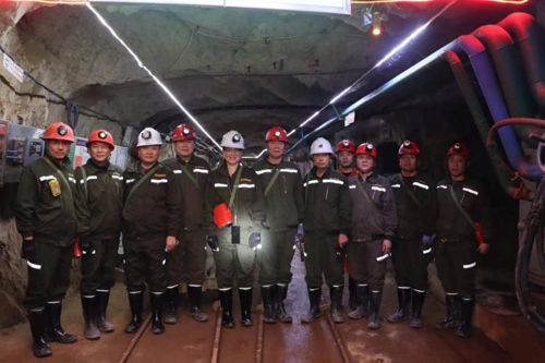 在吉隆矿业,杨宜方一行在赤峰黄金监事会主席成振龙、吉隆矿业总经理孙立军等人陪同下先后到阳坡分矿井下一线和选矿厂扩建项目现场进行实地考察,认真听取相关人员对安全生产情况的介绍,详细了解资源储量、项目进展、发展前景及下一步工作计划。