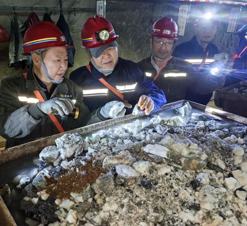朱日祥一行先后到调度指挥中心查阅地质图件资料,到岩心库查看样本,深入四分矿163盲井盲四中段井下1000多米掘进作业面查看五龙矿区深部构造及矿脉延深变化情况。
