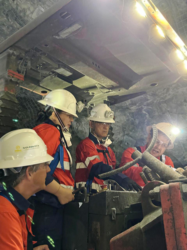 5月23日到达矿山现场后,王建华董事长和杨宜方总裁听取了卡尔关于2024年第一季度生产经营情况及2024年全年预算情况的汇报。王建华对瓦萨团队一季度以来采取的大量降本增效措施表示肯定及支持,为现场员工展现的崭新工作面貌和高涨的奋斗士气感到高兴。王建华指出,瓦萨经营班子要把握公司发展战略,抓住关乎瓦萨矿山未来发展的主要矛盾,围绕探矿增储提高资源级别、提升巷道掘进效率、增加矿石产量、提高开采效率四个方面重点推进工作,编制矿山总体发展规划,打开金星瓦萨发展新局面。王建华强调,瓦萨经营团队要关注人工智能、数字技术等在日常运营、低品位金矿石预选抛废及安全监测等方面的应用,利用先进技术助力降本增效,考察研究替代能源发电的可行性,使用清洁能源为现场运营提供全新动力,实现矿山可持续发展。