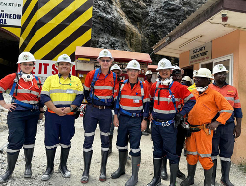 5月24日,王建华董事长一行在瓦萨矿山考察了井下采场、掘进掌子面、选矿厂、破碎站、炼金室、希望山露天采区等,听取了相关技术人员和一线员工的说明,了解了掘进效率、采场接续布置、矿石破碎系统优化、选矿回收率提升等工作的开展情况。