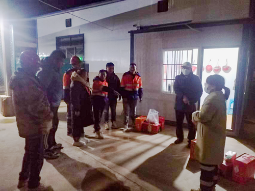大年除夕夜,锦泰矿业总经理朱建德带领值班管理人员,为当班员工送上慰问品,向大家的辛勤付出表示感谢,和员工们同吃团圆饭、共庆新年。