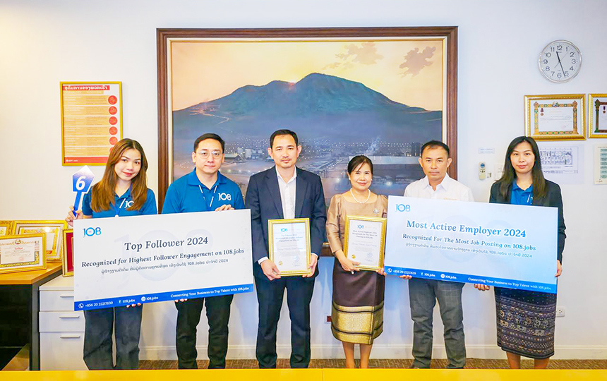 LXML, a leading mining company, received prestigious recognition for its dedication to developing a strong labour market and enabling Lao workers to advance in their careers. This commitment is further underscored by LXML's impressive presence on the 108 Jobs website, where it ranks 6th in both follower engagement and the number of followers. The company was honoured with two awards: the Top Follower 2024 Award, recognizing its exceptional follower engagement on 108 Jobs, and the Most Active Employer Award, acknowledging its high volume of job postings.