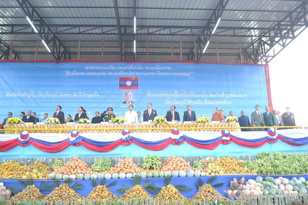 December 23, 2023 – Lane Xang Minerals Limited (LXML) a subsidiary company of Chifeng Gold leading mining company in Laos has announced a generous contribution of 150,000,000 Kip (US$ 7,282.76) supported to Vilabouly District 30th anniversary celebration. The event took place at the Latsavong public stadium in the center of the town. Apart from the mentioned LXML has secured electric power from the company’s 200KVA/180KW genset till the end of the 2 days event. There were more than 200 Sepon employees and contractors joining the more than a thousand paraded staff saluted to greet the celebration.